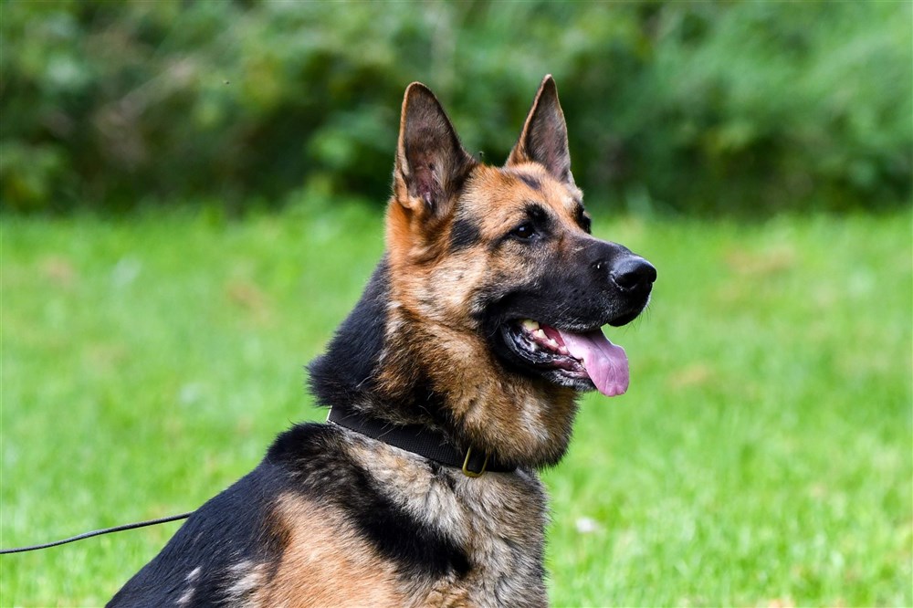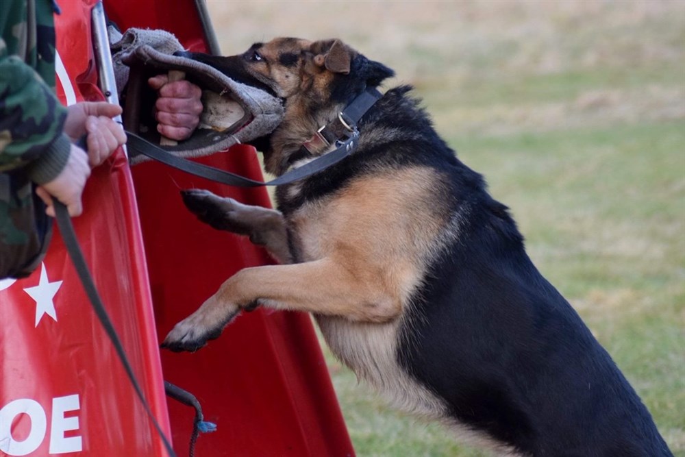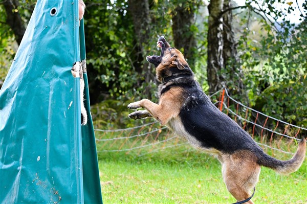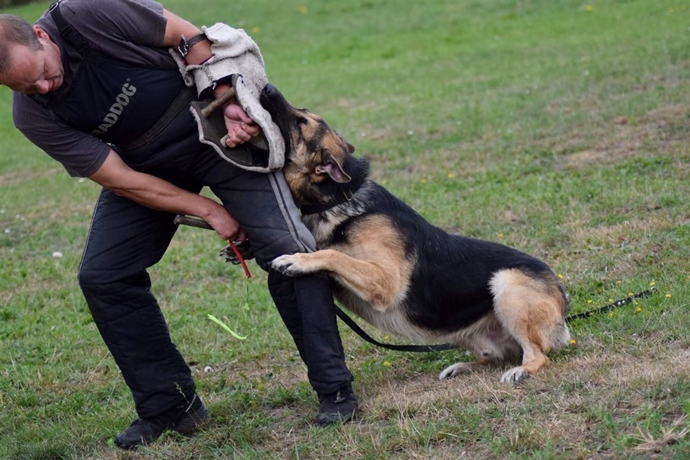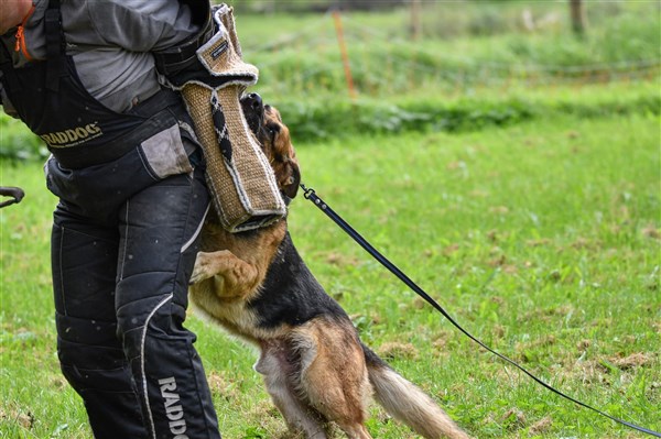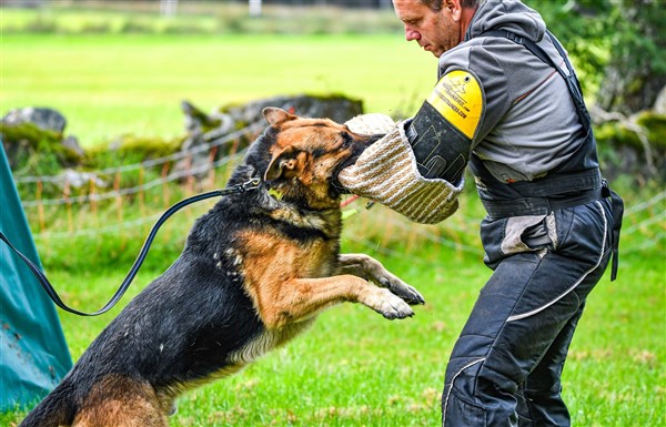Azlangården Rolle Hd grad A samt ED 0. Rolle är polishund och har även fullgjort IGP 1. I Rolles stammtavla finner vi bla Bole Ja Na Ka som vunnit Tyska mästerskapen 2ggr i rad samt pallplats på VM. Morfar är min Julle som vid 10 års ålder fortfarande hörde till de bästa IPO hundarna i Sverige (fjärde plats på IPO SM , silver på Nordiska mästerskapen 2018). Bilderna nedan visar Rex i skyddsarbetet där han visar tyngd och kraftfulla bett. Han visar en påtaglig allvarssida men behåller ändock styrning och stabilitet. Detta är den tydligaste indikatorn på hans goda nervsida.